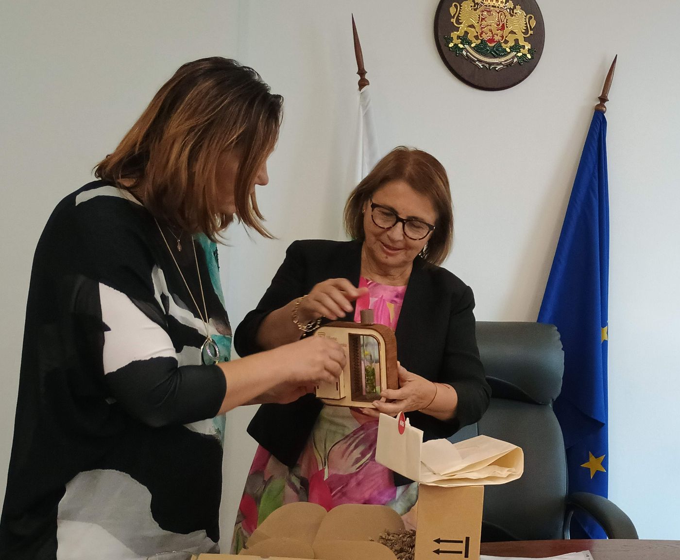 В края на срещата Калина Трифонова подари на проф. Янчева цвете в епруветка, което е разработка на млади учени. Приходите от иновативните продукти се използват за подкрепа на научните изследвания в България.