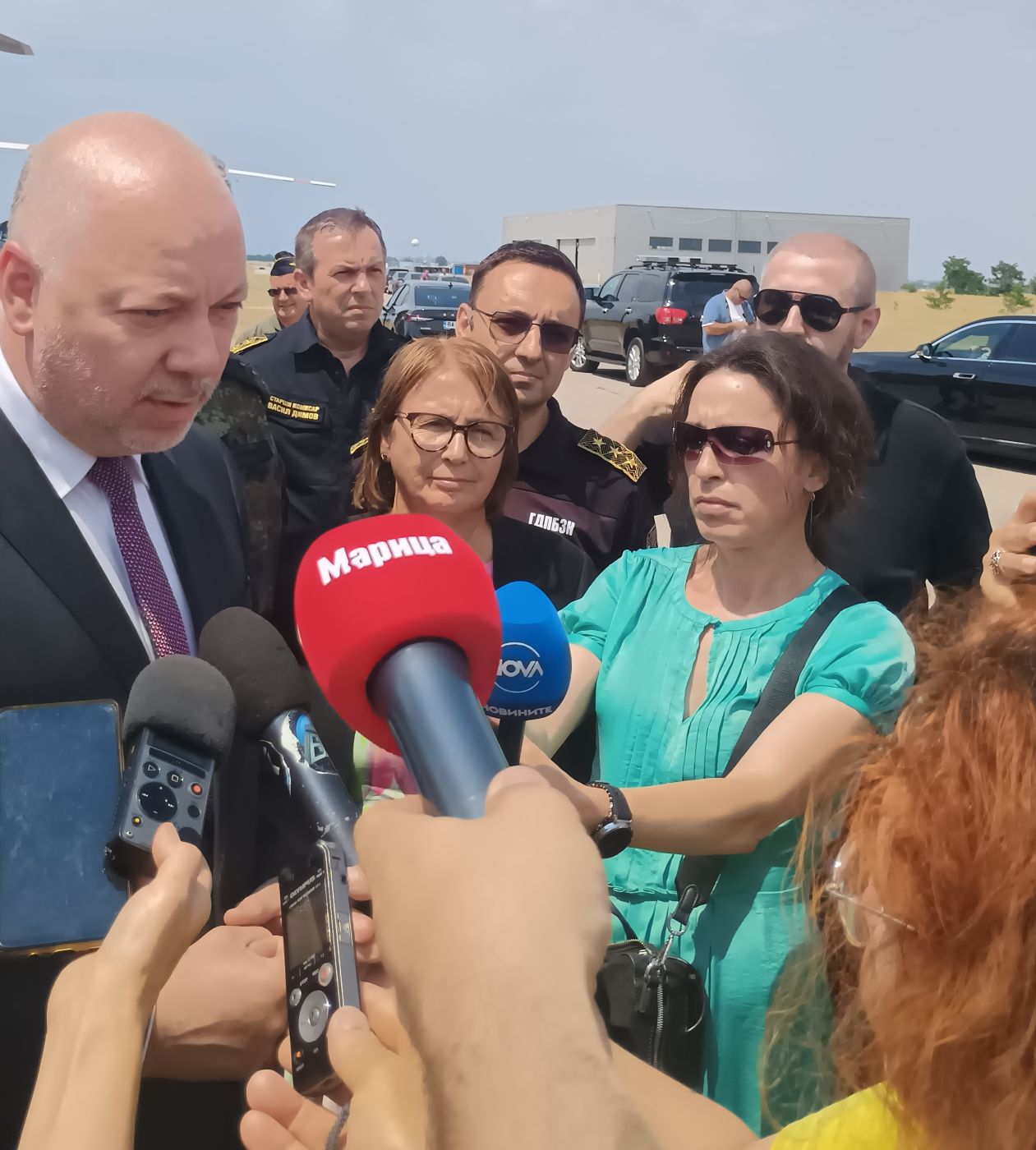 Заедно с премиера в авиобазата бяха министърът на отбраната Атанас Запрянов, началникът на отбраната адмирал Емил Ефтимов, командирът на ВСС генерал-майор Николай Русев, директорът на ГДПБЗН главен комисар Александър Джартов, областният управител на Пловдив проф. Христина Янчева, кметът на Община Пловдив Костадин Димитров и директорът на Регионална дирекция „Пожарна безопасност и защита на населението“ – Пловдив старши комисар Васил Димов. Всички те участваха в работна среща, на която бяха обсъдени комплексните мерки, които предприемат институциите, регионалните и местните власти за справяне с природни бедствия. По време на нея бяха коментирани и оперативните планове и наличните ресурси за противопожарна защита.