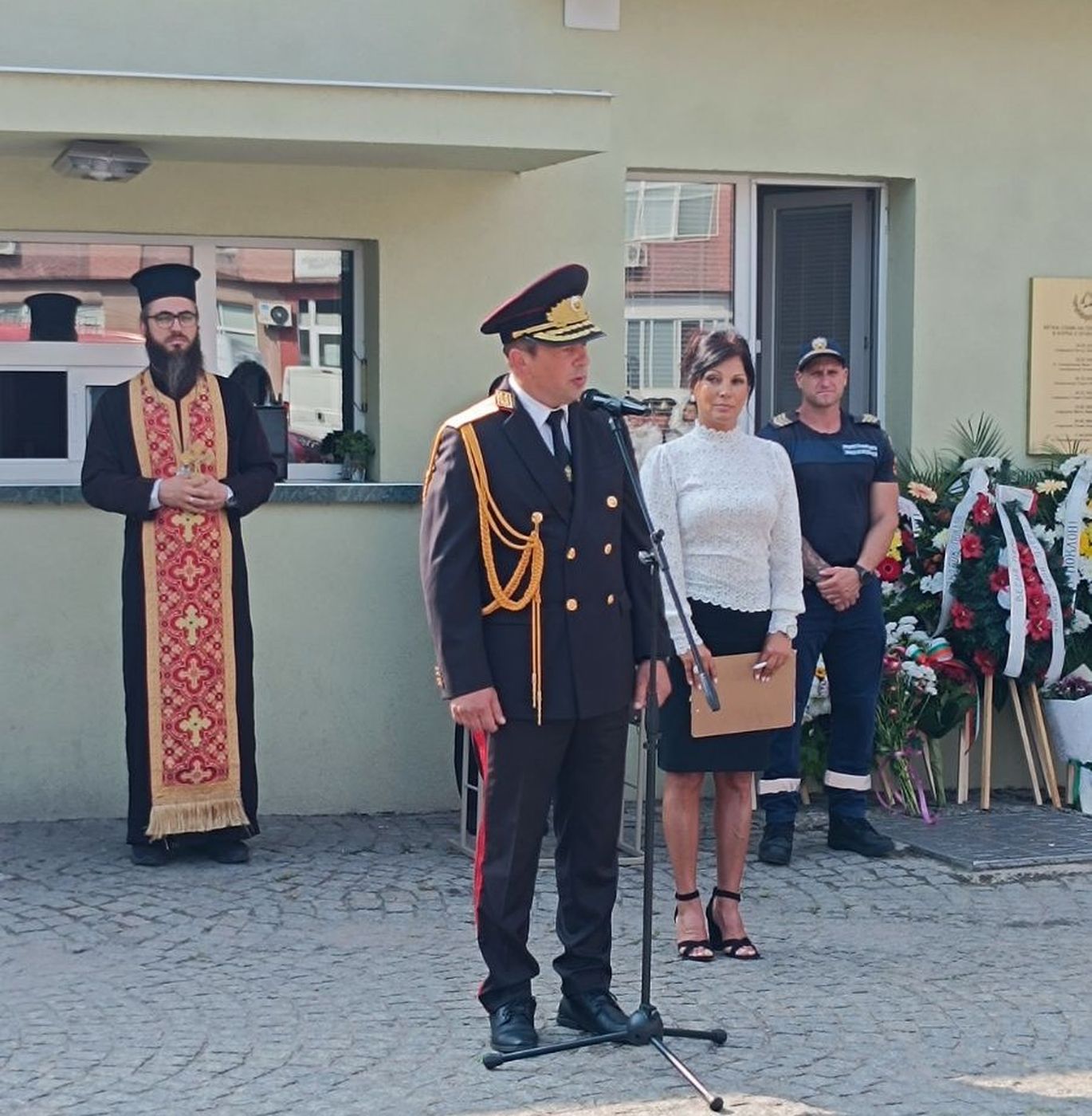 Честването на празника традиционно започна с поднасяне на цветя пред мемориалната плоча на загиналите при изпълнение на служебните си задължения пожарникари. Заупокойна молитва и молебен за здраве беше отслужена от отец Евгени Михайлов, която бе последвана от минута мълчание в памет на загиналите.