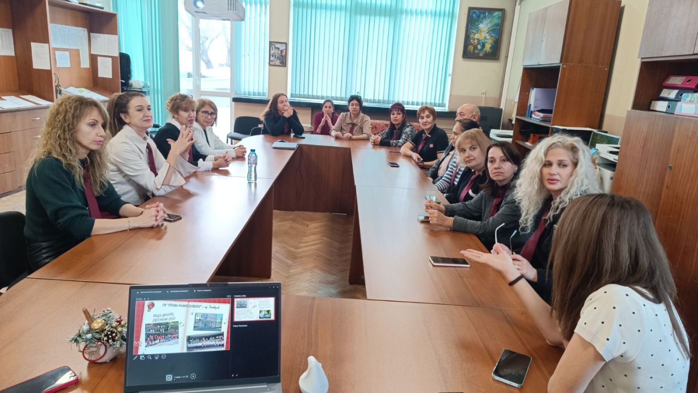 Преди урока областният управител се срещна с екипа, на която директорът представи накратко историята, настоящите успехи и предизвикателствата, пред които е изправено училището в момента.