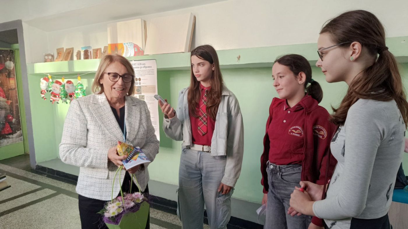 В коридора областният управител беше пресрещнат неочаквано от журналистите от училищния вестник, които се оказаха много добре подготвени и направиха с нея блиц интервю за важните проекти за Пловдивска област.