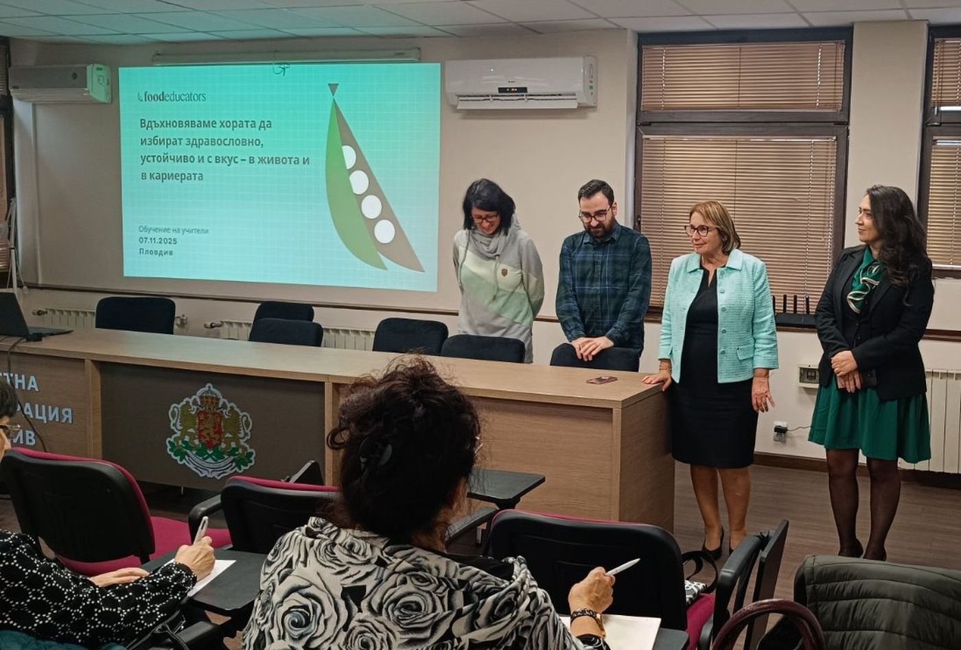 Учителите преминаха през четиричасово интерактивно обучение, част от FoodEducators Teachers’ Training. По време на него те получиха интерактивни ресурси, практически насоки и достъп до европейската платформа FoodEducators, насочена към изграждане на хранителна грамотност и критично мислене сред учениците.