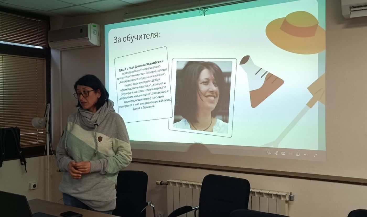 Лектор на събитието бе доц. д-р Рада Динкова-Хаджийски, която е преподавател в катедра „Консервиране и хладилна технология“ на Университета по хранителни технологии – Пловдив. Тя има специализации в Италия, Дания и Германия и е координатор на редица международни проекти, включително EIT Food RIS Consumer Engagement Labs в България.