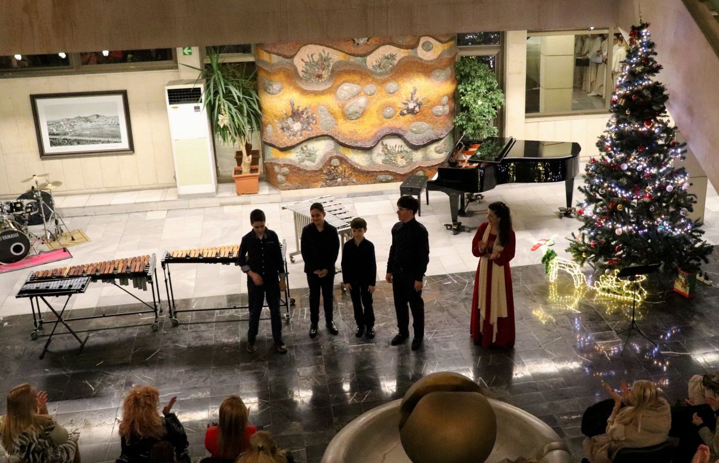 Изпълненията на талантливите ученици от каса по ударни инструменти от Музикалното училище допълниха палитрата от коледни творби
