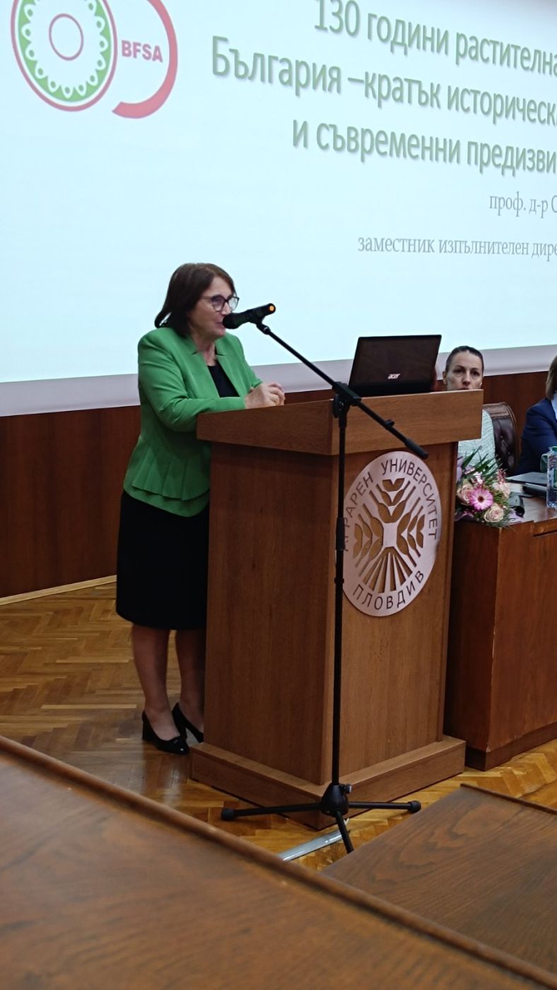 По време на форума прозвуча и специално приветствие от проф. д-р Оля Караджова, заместник-изпълнителен директор на Българската агенция по безопасност на храните с ресор „Растителна защита“. Тя постави акцент върху историческата приемственост и европейското измерение на сектора. „130 години растителна защита означават 130 години експертност, отговорност и доверие. Това е система, градена повече от век – с наука, с практика и с ясно съзнание за обществената отговорност на професията.“ Проф. Караджова подчерта, че растителното здраве е ключов елемент от безопасността на храните и част от концепцията „Едно здраве“, която свързва здравето на растенията, животните, хората и околната среда. Тя отбеляза и активното участие на България в европейската кампани #PlantHealthForLife, с което страната ни допринася с експертен капацитет и реални данни към общия европейски диалог.