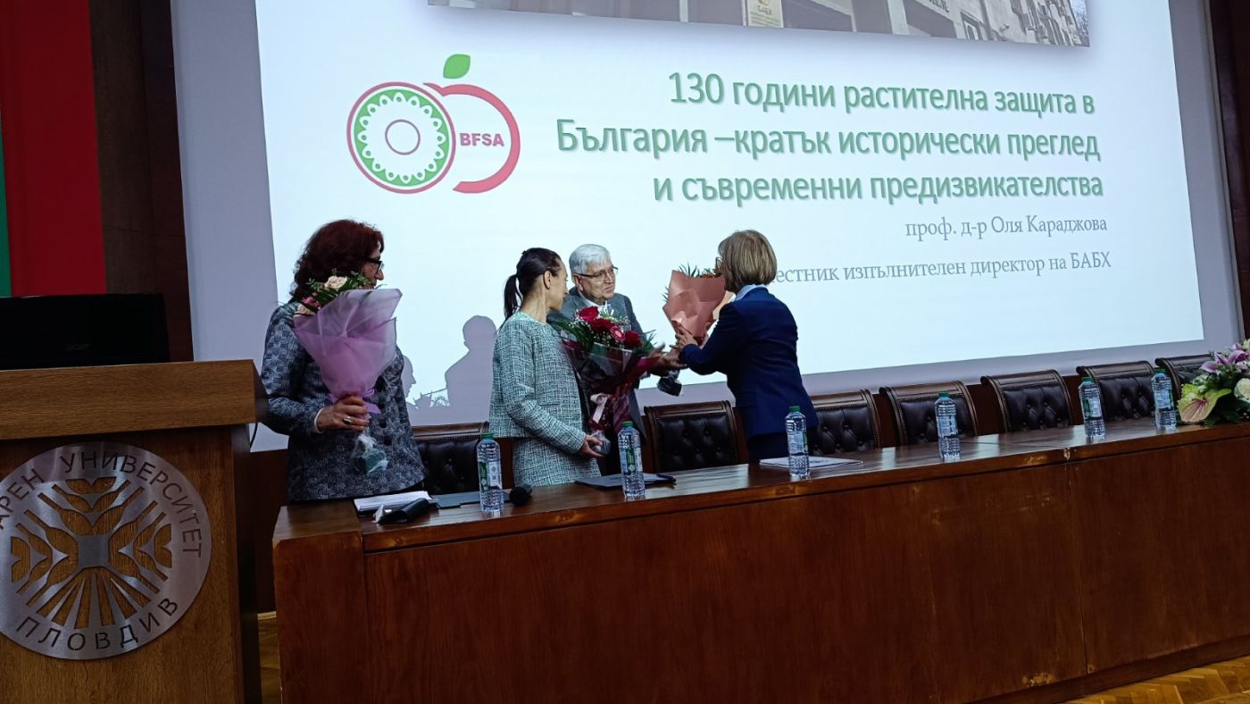 130 години от организираната растителна защита и модерно земеделие честваха в Пловдив. Форумът бе организиран от Българската агенция по храните, браншовите организации и Аграрен университет – Пловдив. Сред официалните гости на честването бяха председателят на ПК по земеделие Цвета Караянчева, зам.-министърът на земеделието Стефан Бурджиев, областният управител на Пловдив проф. Христина Янчева, председателят на Селскостопанска академия проф. Стефан Гандев, ректорът на Аграрния университет доц. Боряна Иванова, председателите на Асоциация растителнозащитна индустрия Нели Йорданова, на Българска асоциация за растителна защита Милко Янев и Асоциация за биологична растителна защита Божидар Петков.